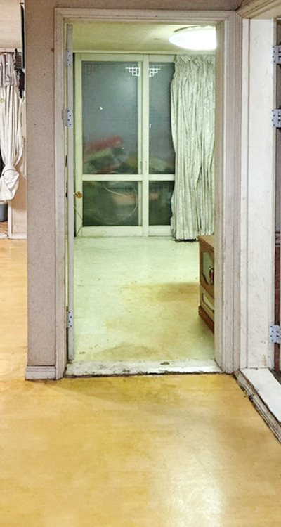 방 두 개, 거실 하나, 테라스 두 개, 화장실 하나로 이루어진 이 공간은 오랜 방치로 인해 악취가 퍼져 있었고, 해충 흔적도 눈에 띄었습니다.