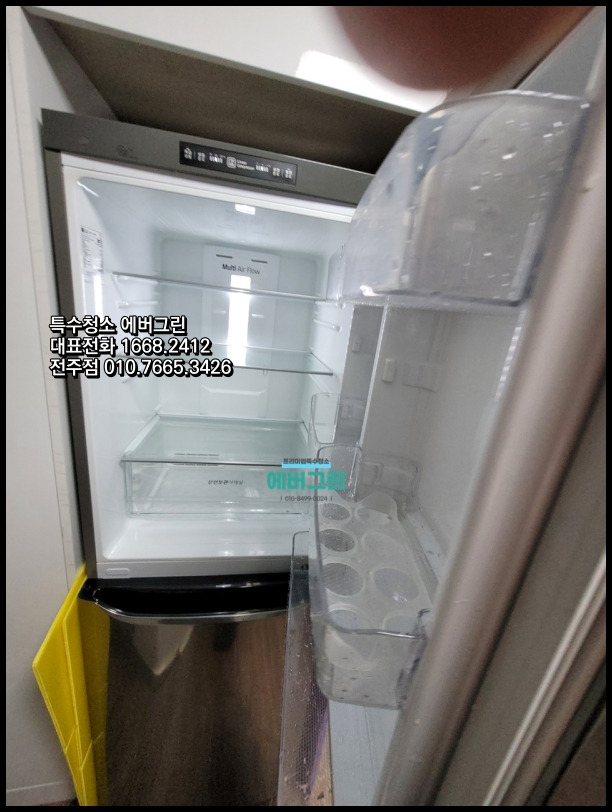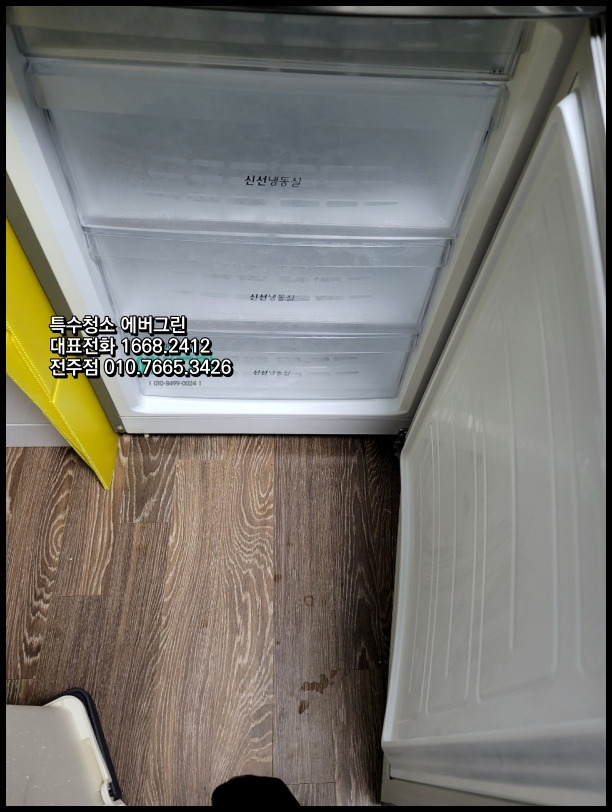 음식물 쓰레기가 가득 찼던 냉장고 안을 다 비우고 모든 공간에 고객님의 생필품을 다 정리해드리고 현장 철수했어요.