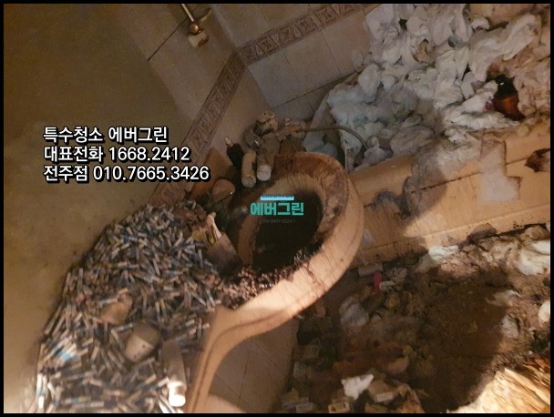 화장실도 더럽고 각종 쓰레기가 서로 섞여있으니까 일반적인 청소로는 답이 없어요.
